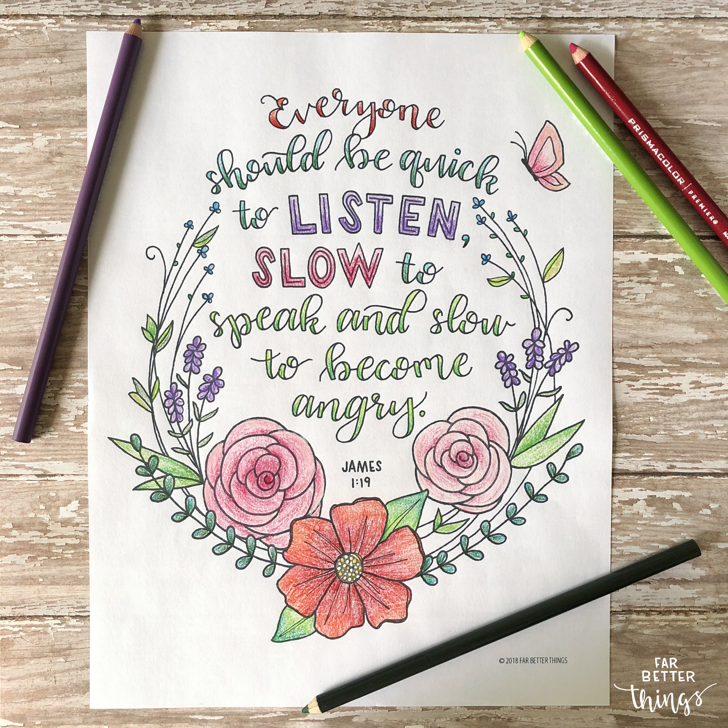 Bible Verse Coloring Page James 1 19 Printable Coloring Etsy
